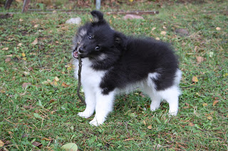Ulkona ollaan oltu paljon, mutta pienissä erissä kun on niin kova tuuli ja maa on jo kylmä ja kostea. Yhet kakat ja parit pissat vaan tullu sisälle, muuten ollaan onnistuttu tekemään pihalle kaikki tarpeet - toistaiseksi paljon vähemmän siivottavaa entä mitä oli aikanaan Taikan kanssa!